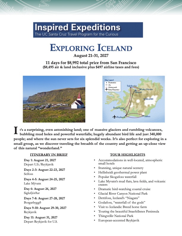 Book your trip today by filling out the brochure and emailing it to ietravel@ucsc.edu.
