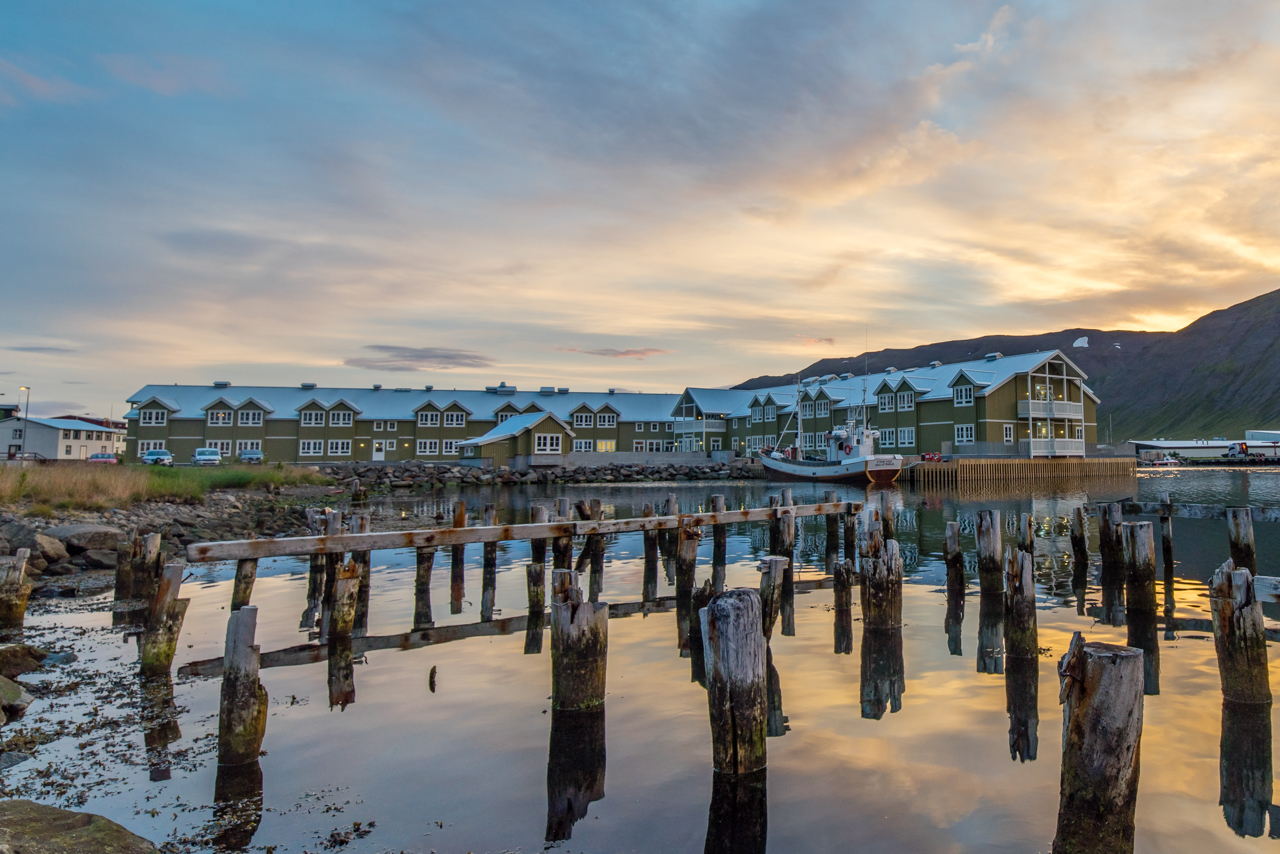 Sitting on a promontory jutting out into the Siglo fjord, the Siglo Hotel enjoys wonderful views of the fjord, mountains, and peaceful small town of Siglufjordur. Amenities include three restaurants, a lobby bar, cozy sitting room with a fireplace, outdoor hot tub overlooking the harbor, sauna, and complimentary Wi-Fi internet access. Each of the 68 guest rooms has a private bath with hair dryer, in-room safe, TV, and phone.
