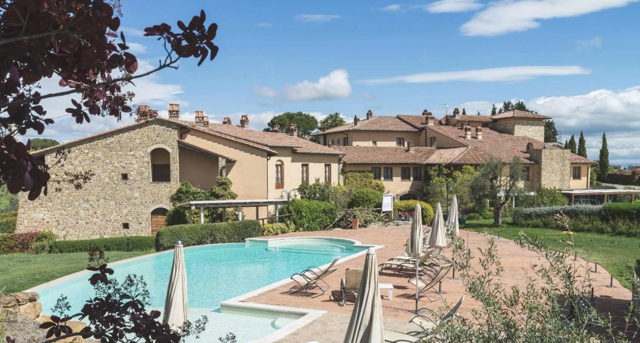 Hotel Borgo di Cortefreda enjoys a spectacular location in the heart of Tuscany, with sweeping vineyard views from the hotel’s garden-filled grounds. Amenities of this classic Italian villa include a restaurant and bar, spa with sauna and steam room, outdoor infinity swimming pool with panoramic views of the countryside, poolside bar, lounge, and complimentary Wi-Fi internet access. Air-conditioned guest rooms include a private bath with hair dryer, minibar, TV, and phone.